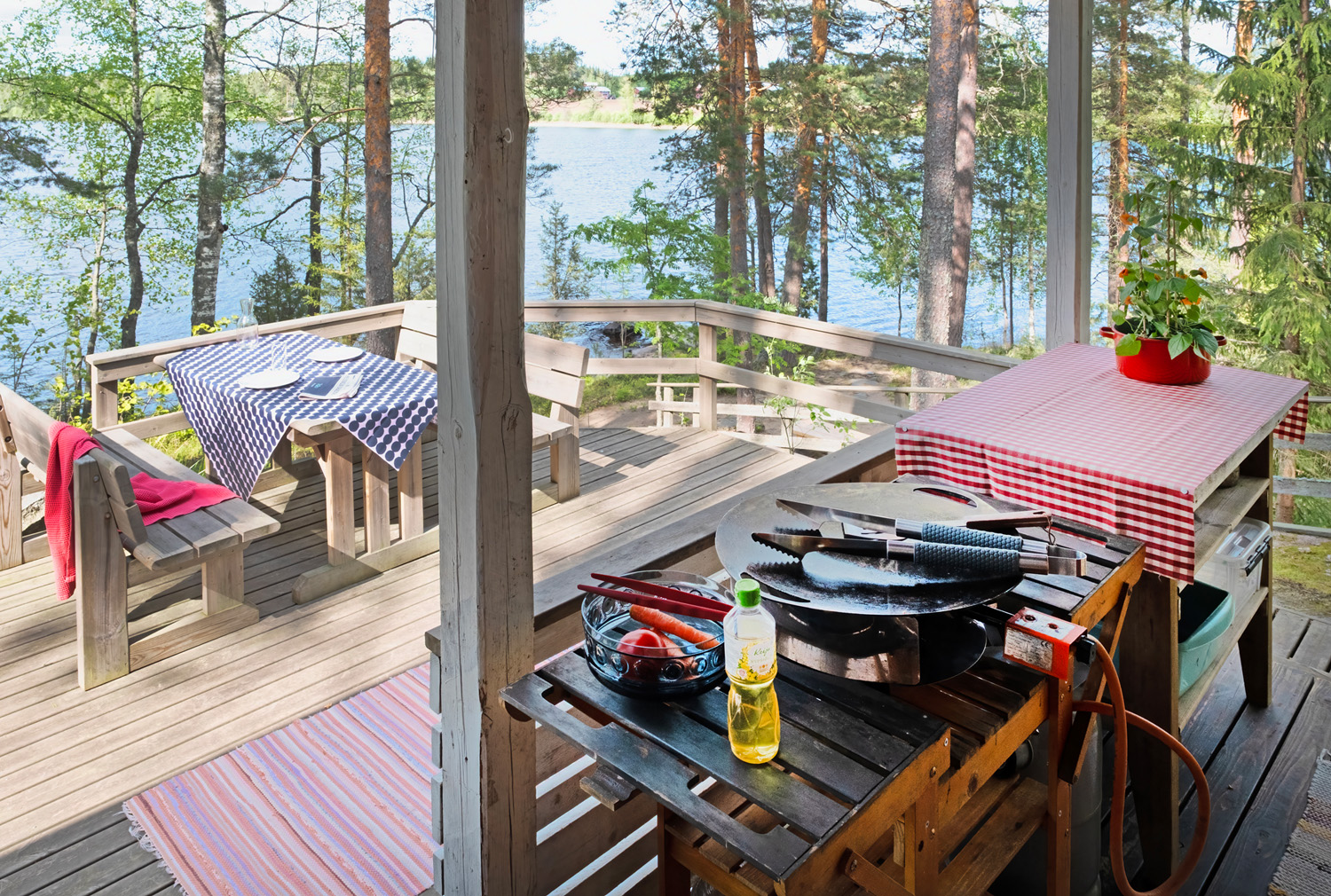 Niemenkärjen edustalla kalastajia odottavat hyvät saalispaikat. Mökin varustelussa on erityisesti huomioitu ruoanvalmistus ulkosalla. Aurinkoisella patiolla käytössänne on kaasulla toimiva muurikkagrilli, jolla valmistuvat niin vokkiruuat, pihvit kuin rapeat letutkin. Kalansaaliit puolestaan kypsyvät kätevästi rannalle muuratun puugrillin savustuspöntössä.