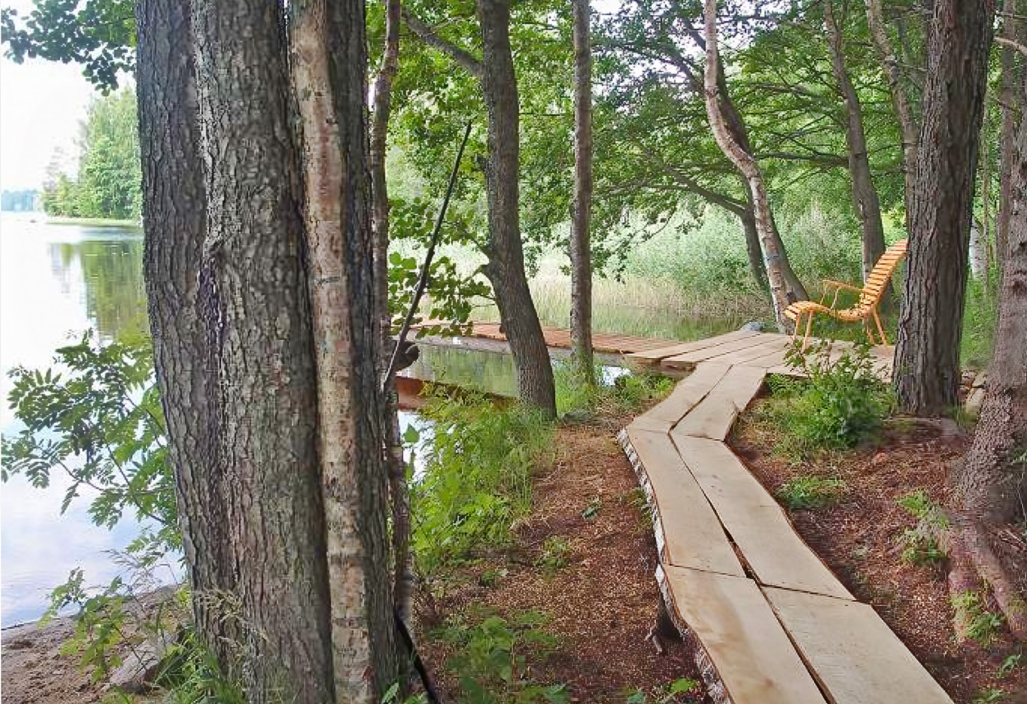 Tervaleppien alla, kalaisan järven rannalla